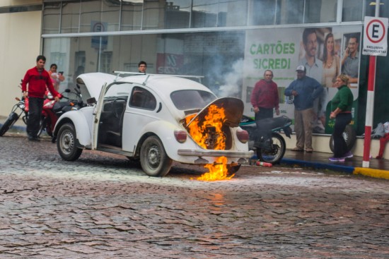 Um fusca pegou fogo na tarde desta segunda-feira, dia 22, no centro de