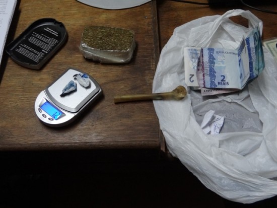 No coletivo estava um policial militar que notou a alteração do sujeito e acionou a guarnição da cidade. Ao desembarcar a BM fez a abordagem e encontrou 70 gramas de maconha, cocaína (uma grama), um cachimbo e R$ 211 em dinheiro, além de garrafas de bebidas alcoólicas.
