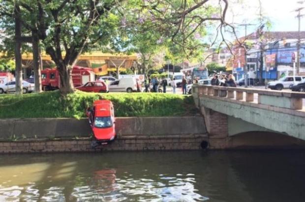 Um táxi ficou preso no talude do Arroio Dilúvio, na altura da Avenida